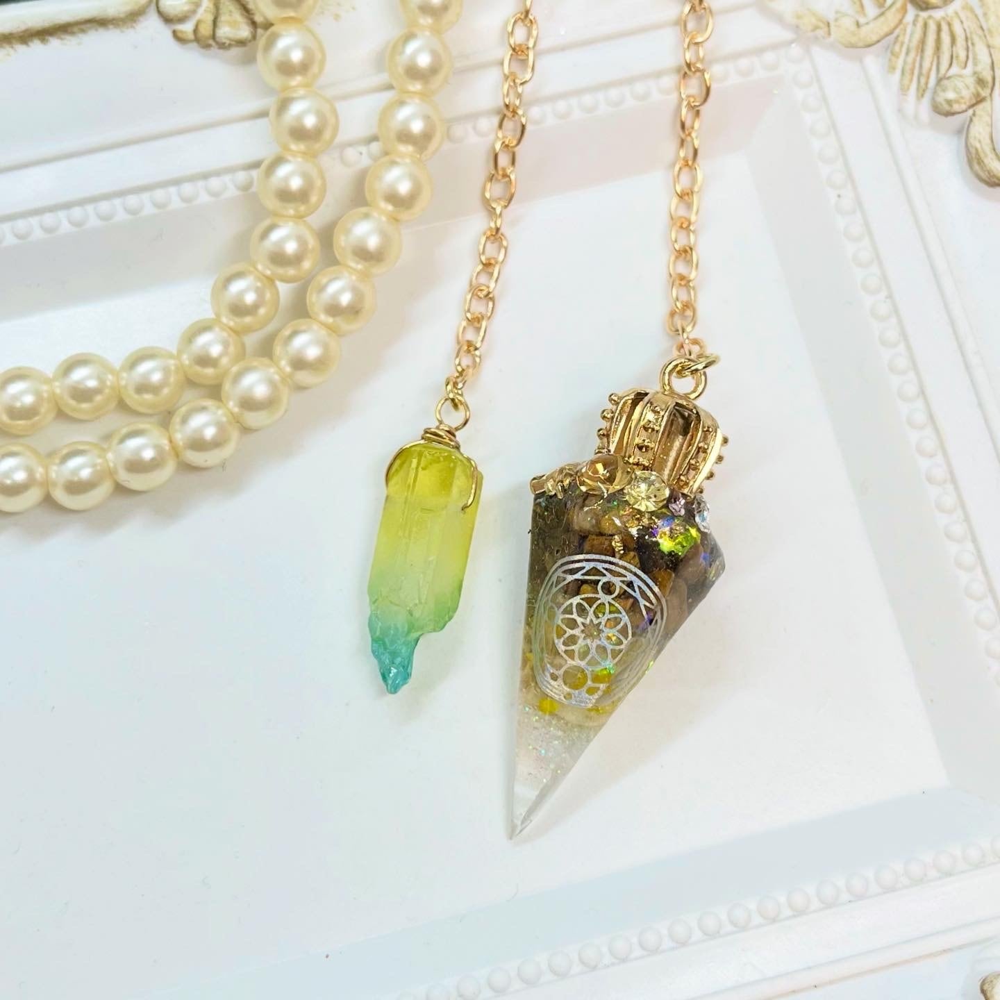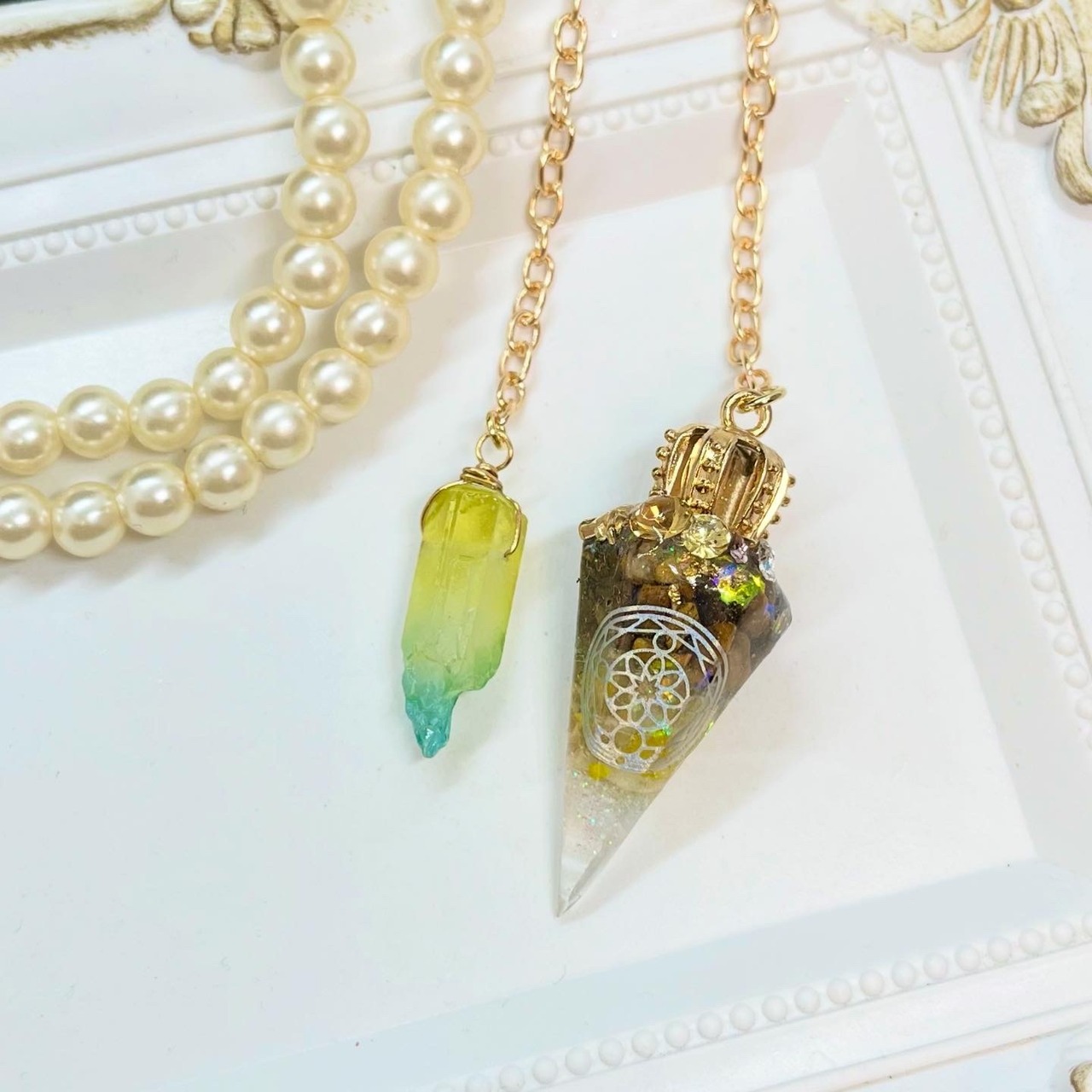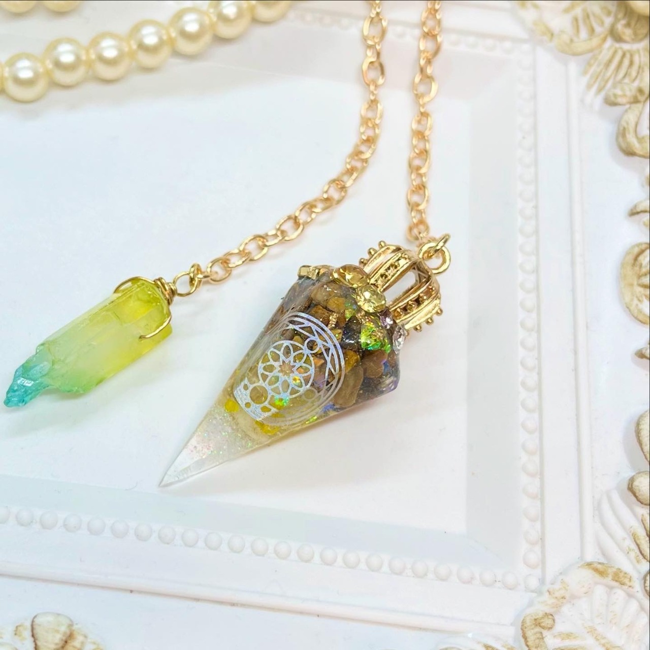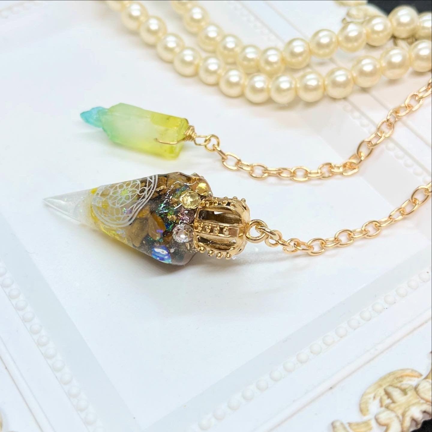 人気の六角錐オルゴナイトをペンデュラムにしました♡